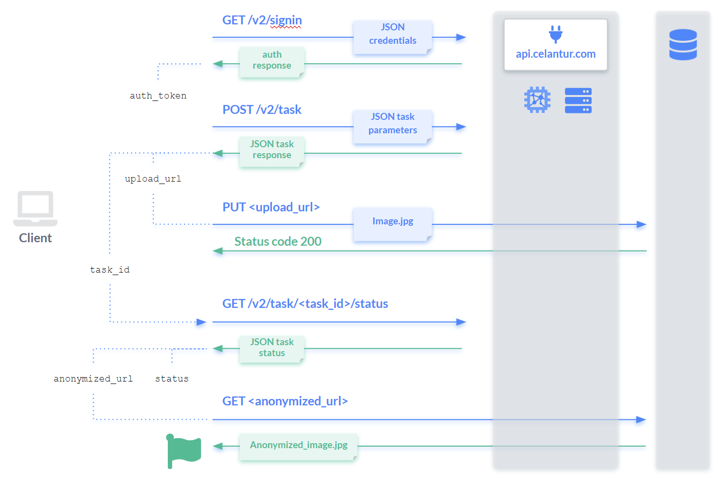 <figure><img src="https://1992407480-files.gitbook.io/~/files/v0/b/gitbook-x-prod.appspot.com/o/spaces%2Fr2aH3h1rP4SjkhFlr7Mp%2Fuploads%2FemZipAmZvskE1XjvtUdp%2Fimage.png?alt=media&#x26;token=ce66c576-2bf9-4619-9eef-42682798dc1e" alt=""><figcaption><p>HTTPS workflow diagram of Celantur Cloud API v2</p></figcaption></figure>